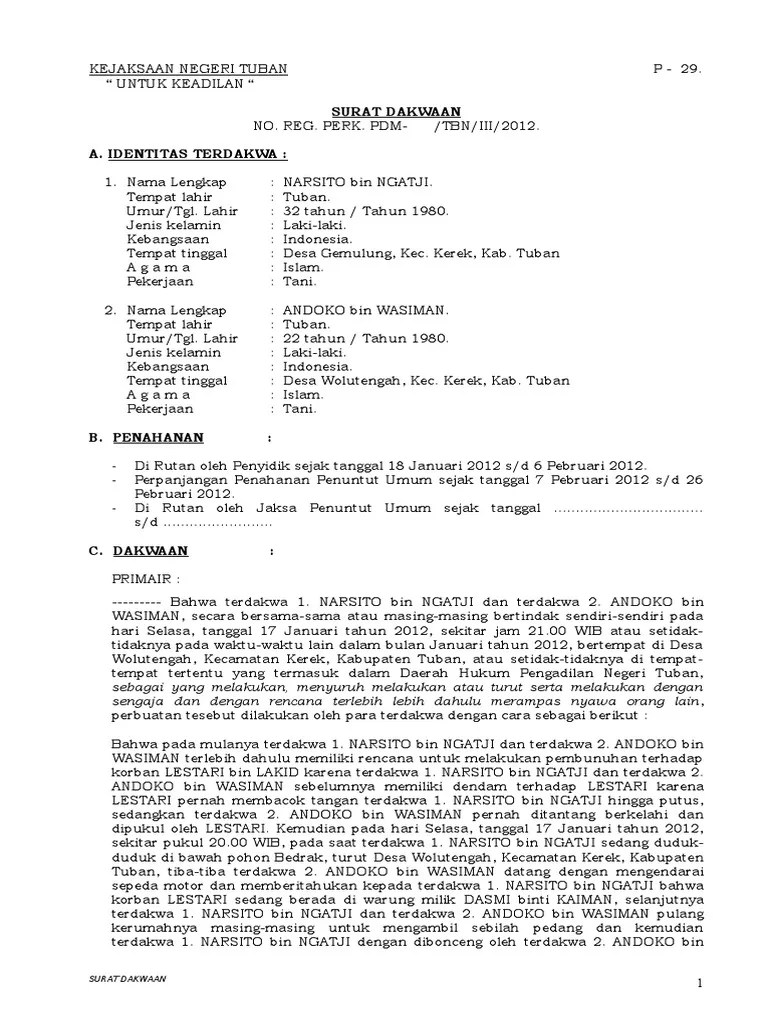 Contoh Isi Surat Dakwaan : Contoh Nota Keberatan Pdf / Bahwa awalnya pada hari sabtu tanggal23 november 2013 sekitar pukul 22.00 wib terdakwa.